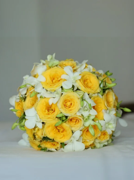 A cheerful blend of yellow and white blooms, this bouquet shines with joy and elegance- symbolizing happiness, peace, and new beginnings. Perfect for brightening any space or heart.